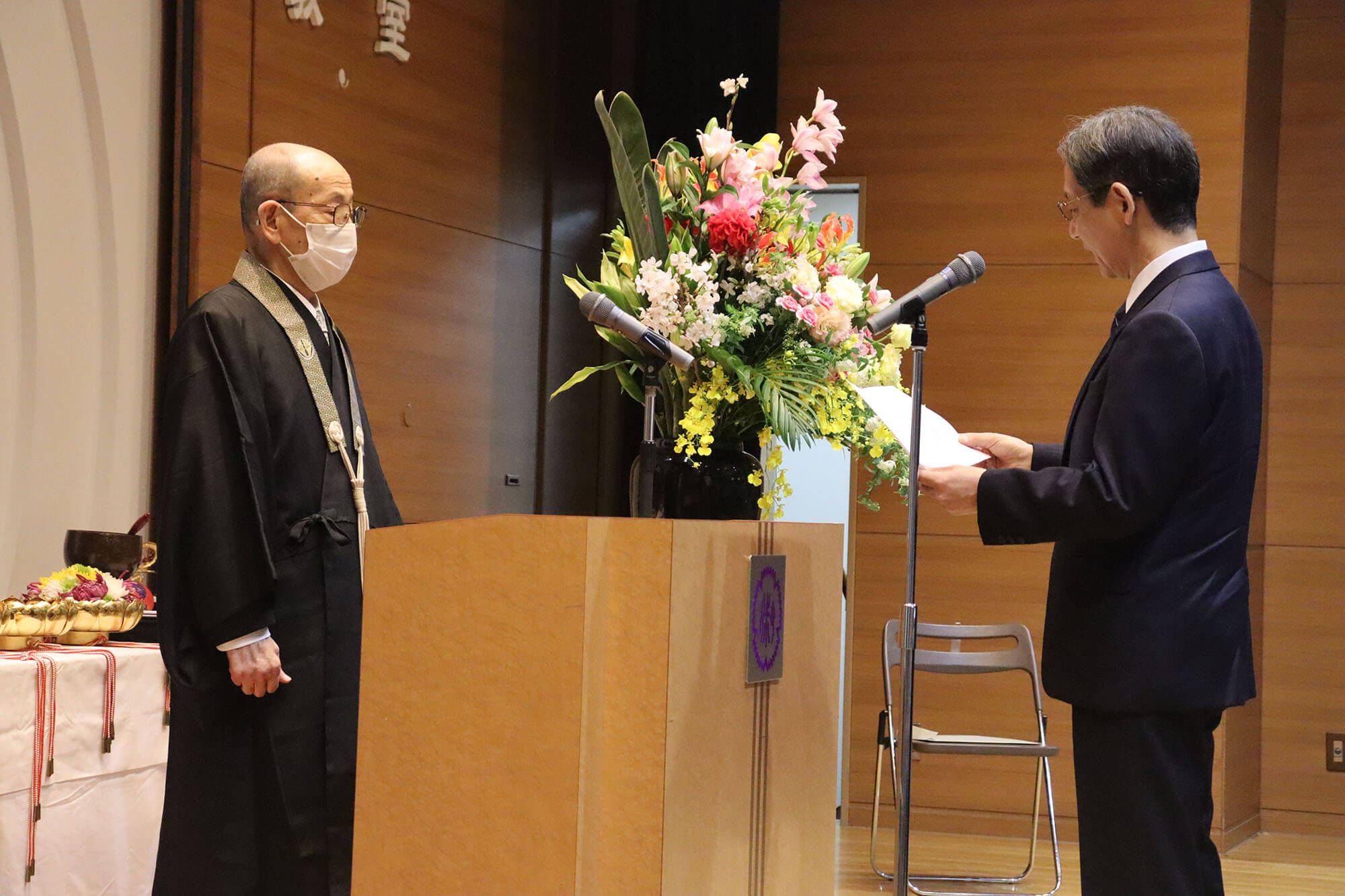 式の終盤には教職員代表による宣誓が行われ、学生・生徒・児童・園児の教育のため努力を重ねていく決意が述べられました。また、新任事務職員は入職式後、菊地常務理事より辞令が交付されました。