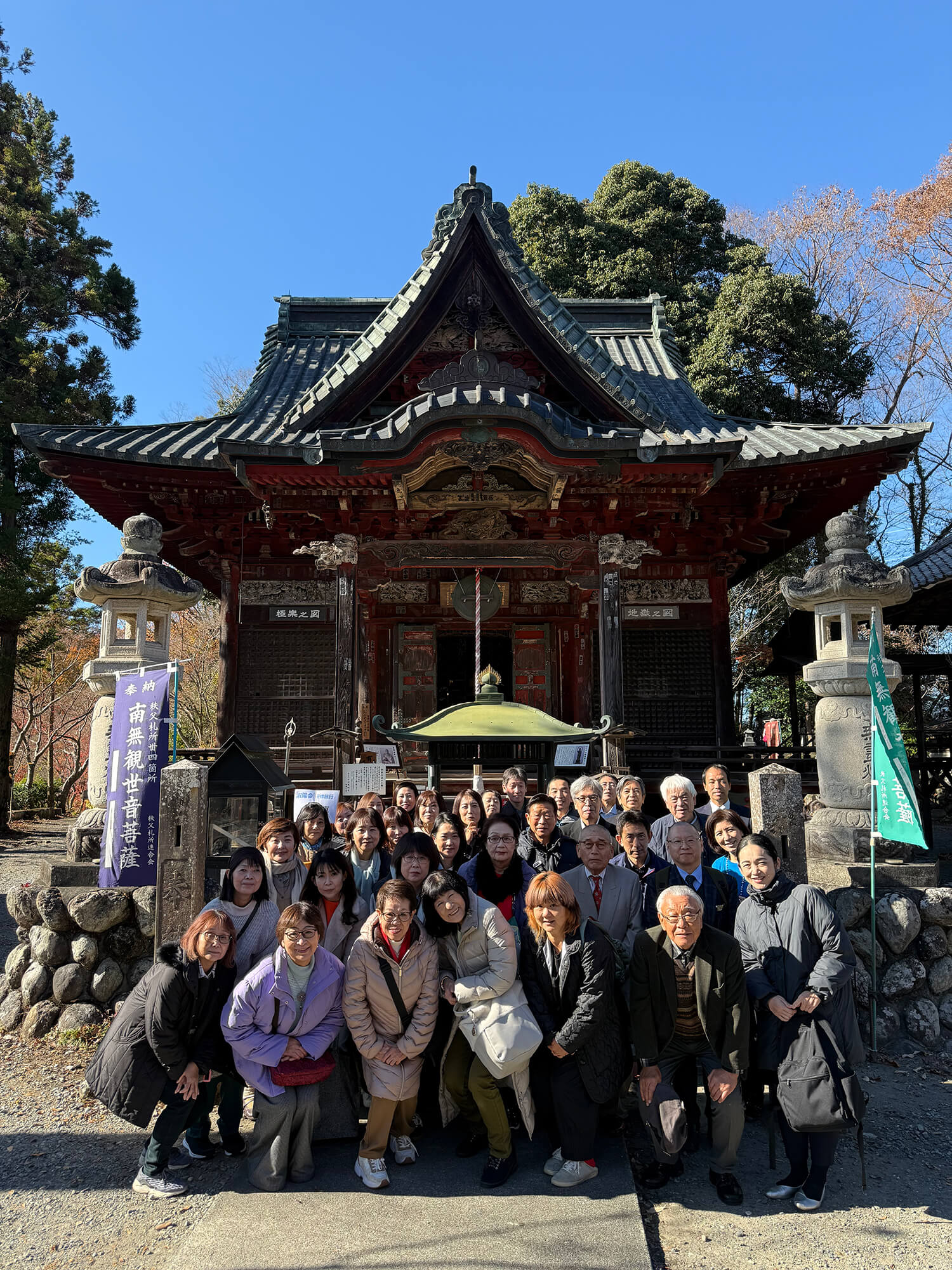 大乗淑徳学園淑陽会では、11月29日(土)に令和7年度研修旅行を実施しました。今年は、各学校のPTA・協賛会、後援会より73名の皆様にご参加いただき、バス2台で紅葉が美しく残る晩秋の秩父へと向かいました。